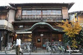 隔了小巷旁,有一間休業的旧藤の森温泉,現已被改成さらさ西陣的cafe shop,讓人也同樣感動.更大片的花磚タイル,和二樓的文化展示場,都讓人掉入曾是華麗公共錢湯,成功轉型為咖啡文藝的公共空間,繼續服務市民的的魔幻領域裏.空間思考後的再造,及同是歷史公共空間的延續,才是城市街區裏市民生活維繫之所在.錢湯,咖啡廳,同是付費的街屋公共空間,並没有因轉型成咖啡廳而喪失了做為社區人與人交流對話的可能,也讓本己失落荒廢的市民關係,透過咖啡的公共空間再次連結起社區人與人的關係.也看到了都市發展中,空間如何被延續與社會對話的可能.而不是只是為了商業生存或為了保留而保留所產生的被動空間利用.