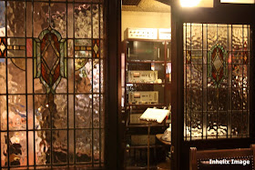 Art Nouveau新藝術風的彩嵌玻璃,背後是整櫃的管機